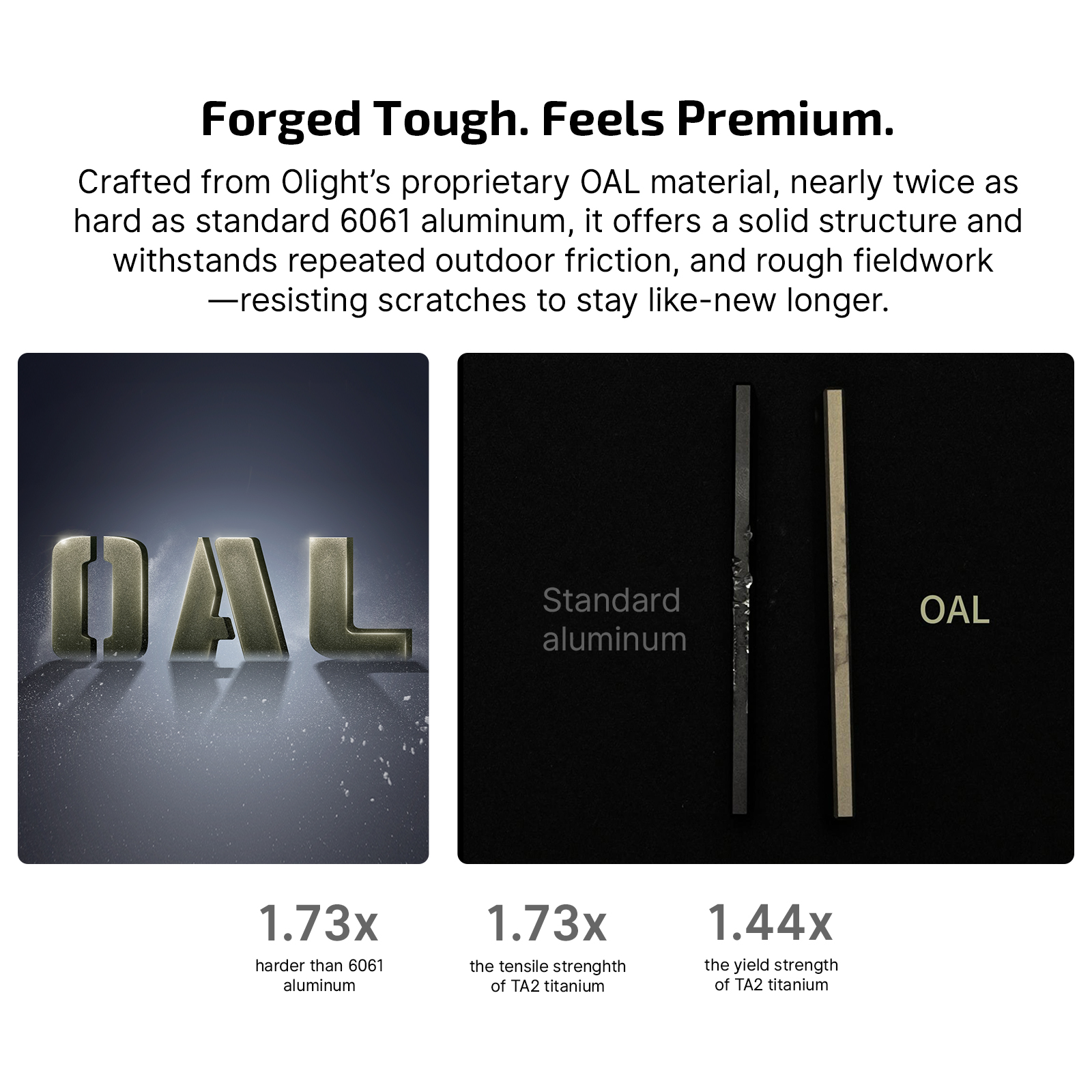 The Efficient Intense Pure (EIP) LED is Olight’s self-developed masterpiece. It offers 10% higher efficiency and a pure natural-white beam that eliminates the “green/yellow tint” found in mass-market emitters.