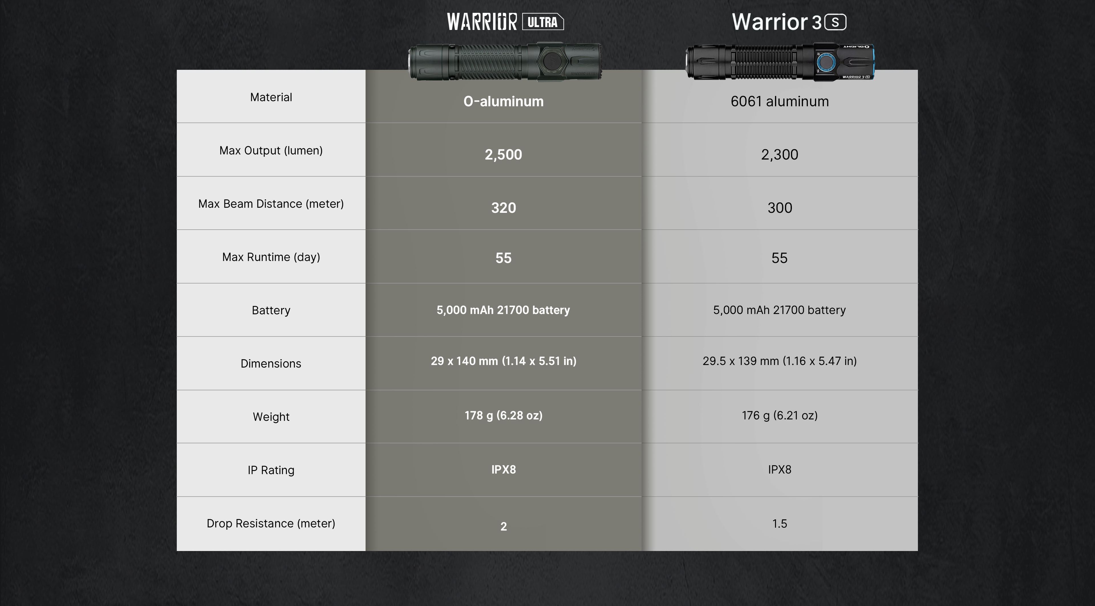Durable O-Aluminum Construction: The Warrior Ultra is constructed from premium O-Aluminum material, which is, in fact, tougher than standard 6061 aluminum. This ensures not only durability but also a lightweight design suitable for long-term outdoor use.