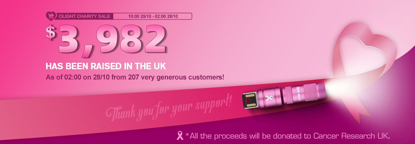 Olight's dedication remained unwavering, contributing $158,523 to support breast cancer initiatives worldwide.