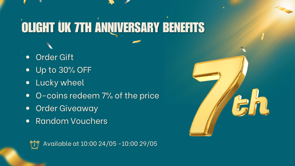 The Olight UK is abuzz with excitement as it celebrates its 7th anniversary, marking a milestone. In honour of this momentous occasion, we present a jubilant array of special offers and exclusive surprises to our loyal patrons. We want to thank our loyal customers with a host of exciting promotions and special offers. As we mark this milestone, we invite everyone to join in the festivities and take advantage of the fantastic deals available.