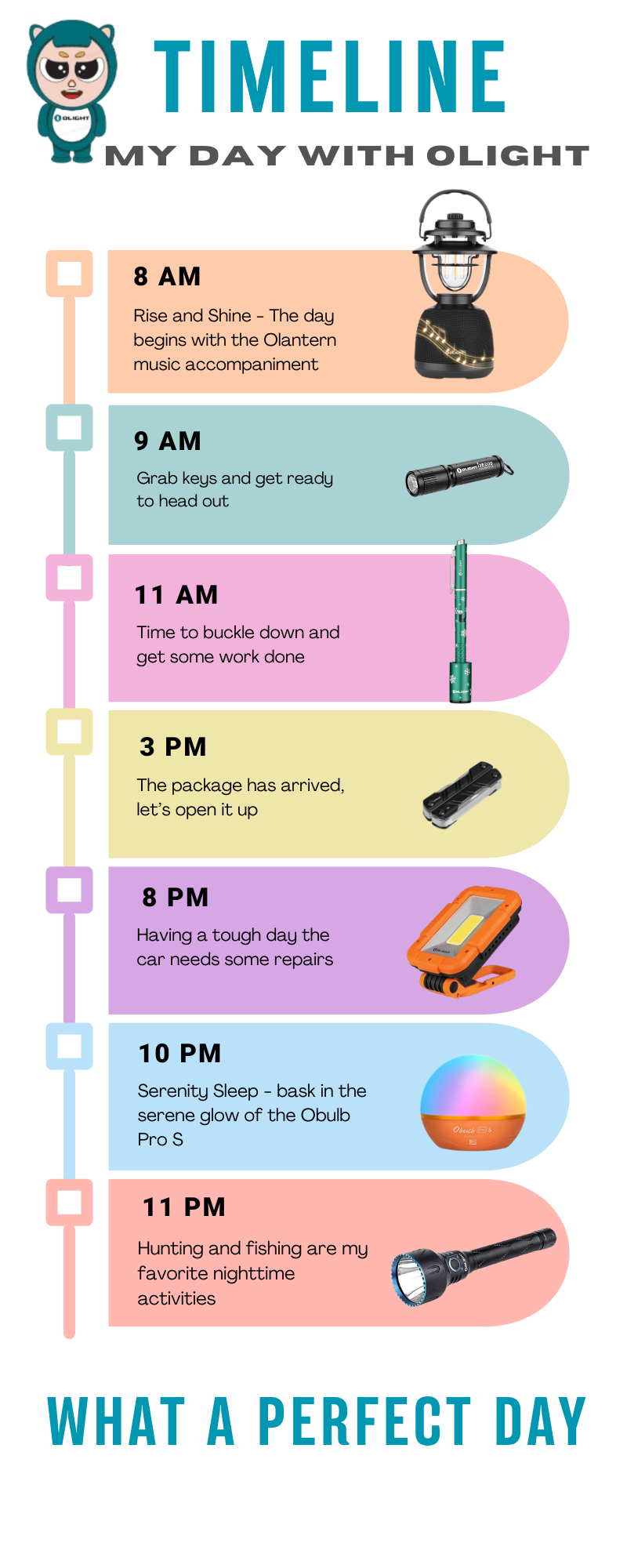Need some inspiration? Follow along as the Olight Mascot shines a light on its day with a schedule that's bound to spark some bright ideas: