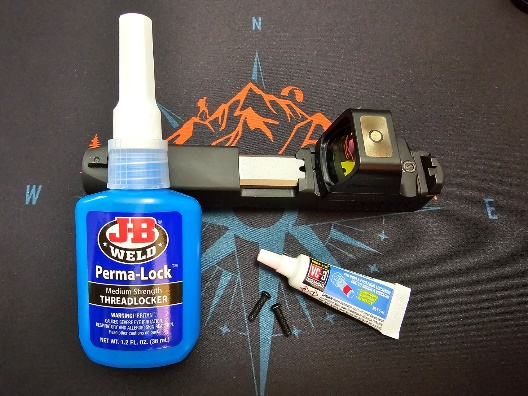 To ensure a secure installation, applying a small amount of Blue Loctite or a similar thread sealant like Vibra-Tite VC-3 onto your mounting screws is recommended before proceeding. This will prevent them from becoming loose over time due to recoil and vibrations.
