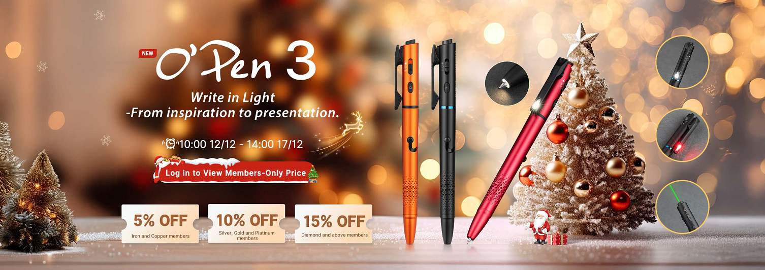 Just in time for the holidays, we are thrilled to introduce the O'Pen 3. This isn't just a pen; it is a multi-functional tool designed for those who appreciate precision and utility.
