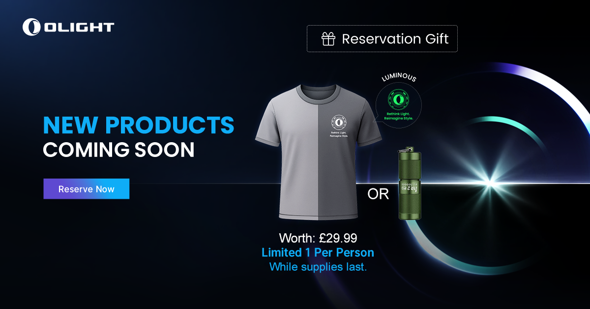 Reserve the new product to get the debut exclusive T-shirt valued at £29.99 as a gift with the purchase of the new product on https://uk.olight.com/. Alternatively, we also have the i1R 2 Pro OD Green available as a choice. Limited 1 per person, while supplies last.