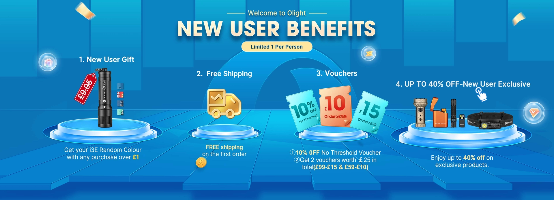 Gift: Every new user can get an order Gift i3E Keychain Torch with any purchase over £1.
