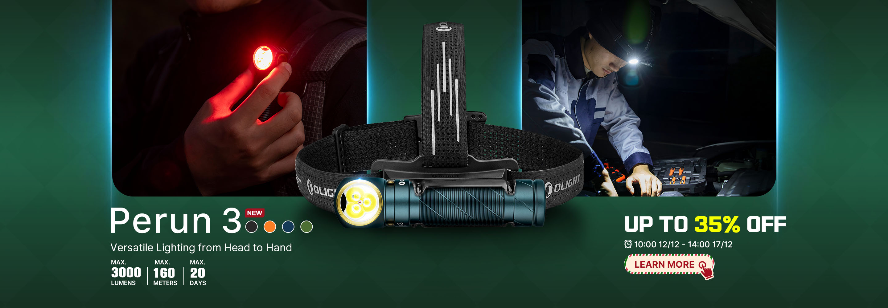 Perun 3 High-Performance Head Torch with White & Red Light