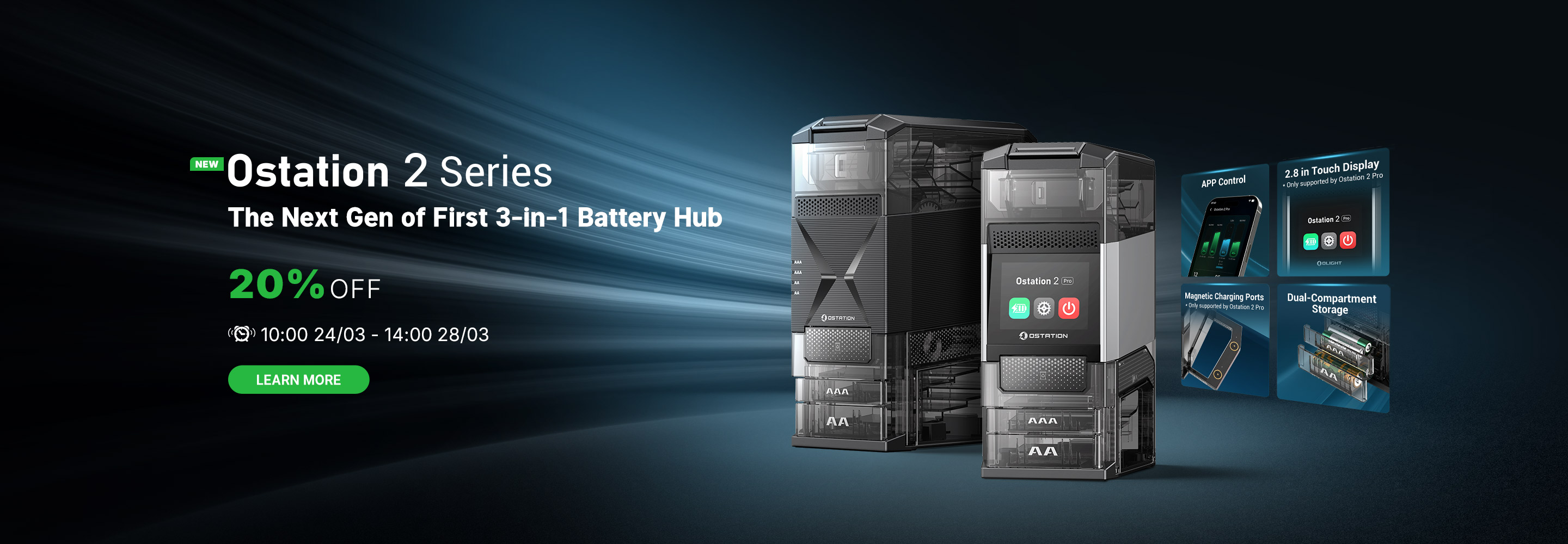 Ostation 2 Series 3-in-1 Smart Battery Hub for AA & AAA Rechargeable Ni-MH & Li-ion Batteries